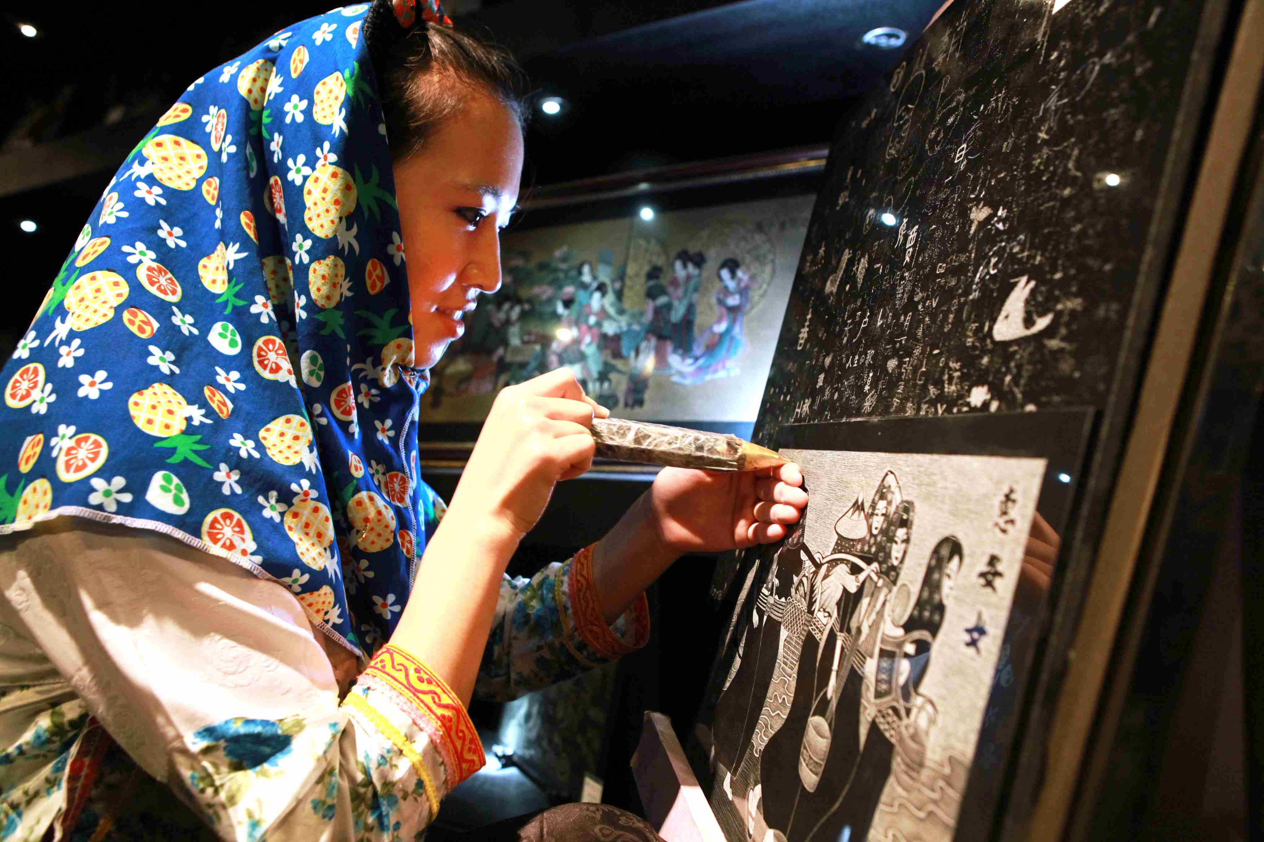 蘇州刺繡繡絲綢,閩南刺繡繡石頭?;莅才C石頭講的正是福建省非物質文化遺產,具有“中華一絕”之稱的惠和影雕技藝。這種技藝由南派石雕大師李周首創(chuàng),李雅華女士是李周的第十六代傳人?;莺陀暗窦妓嚫鶕诎酌靼党上裨?,用特制的針一樣細小合金鋼頭工具,通過運用腕力調節(jié)針點疏密粗細、深淺和虛線變化而表現(xiàn)圖像。